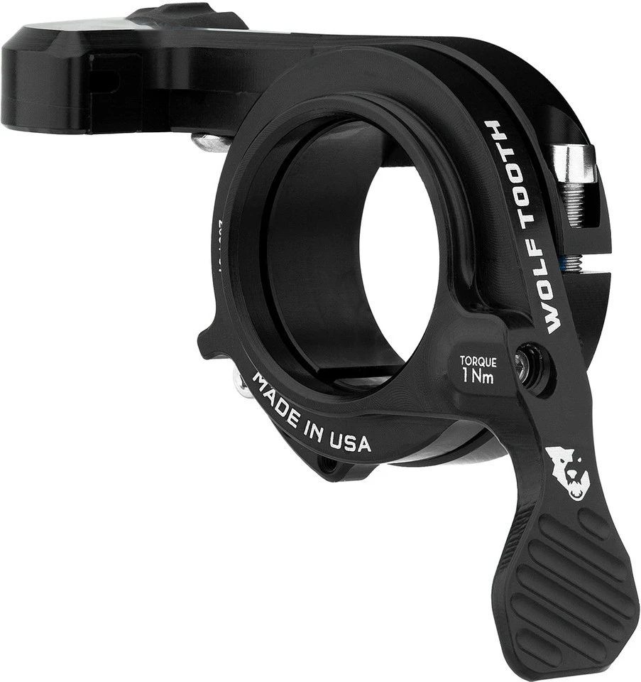 Technical Information:Material:aluminium (6061-T6)Compatibility:for mounting on the left-hand side next of other control levers such as 2x shifters, suspension lockout levers or e-bike shiftersall mechanically controlled dropper postsall MTB handlebars15 mm of space required on the handlebarsFeatures:very narrow design to fit between existing shifters and the left gripfour lever positions to choose from to avoid interferencering-shaped construction surrounds the handlebars, lever operation made easier thank to additional leveragelarge, smooth, sealed Enduro ball bearings around the handlebarsclean and efficient cable routing does not interfere with brake leveradjustable for ideal ergonomics and controlMade in the USAManufacturer Number:black:REMOTEBARCENTRICContents:1 x Wolf Tooth Components ReMote BarCentric lever