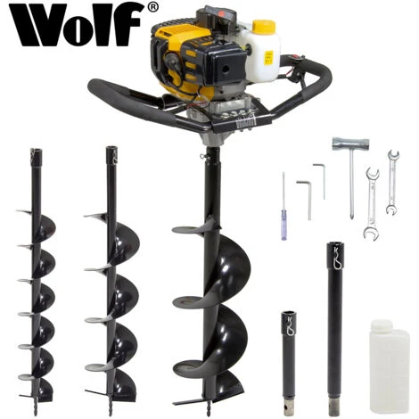 Reliable and easy to start the Wolf Auger has a large vibration-reduction handlebars enabling total steering control of the augers level and depth. Standard auger bit has 750mm length, but provided extension can be used to extend up to 1050mm