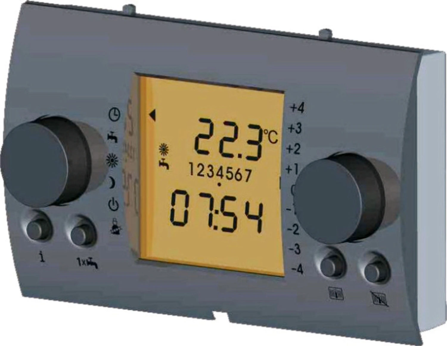- 4 function keys for frequently used functions (heating, hot water, lowering, info)