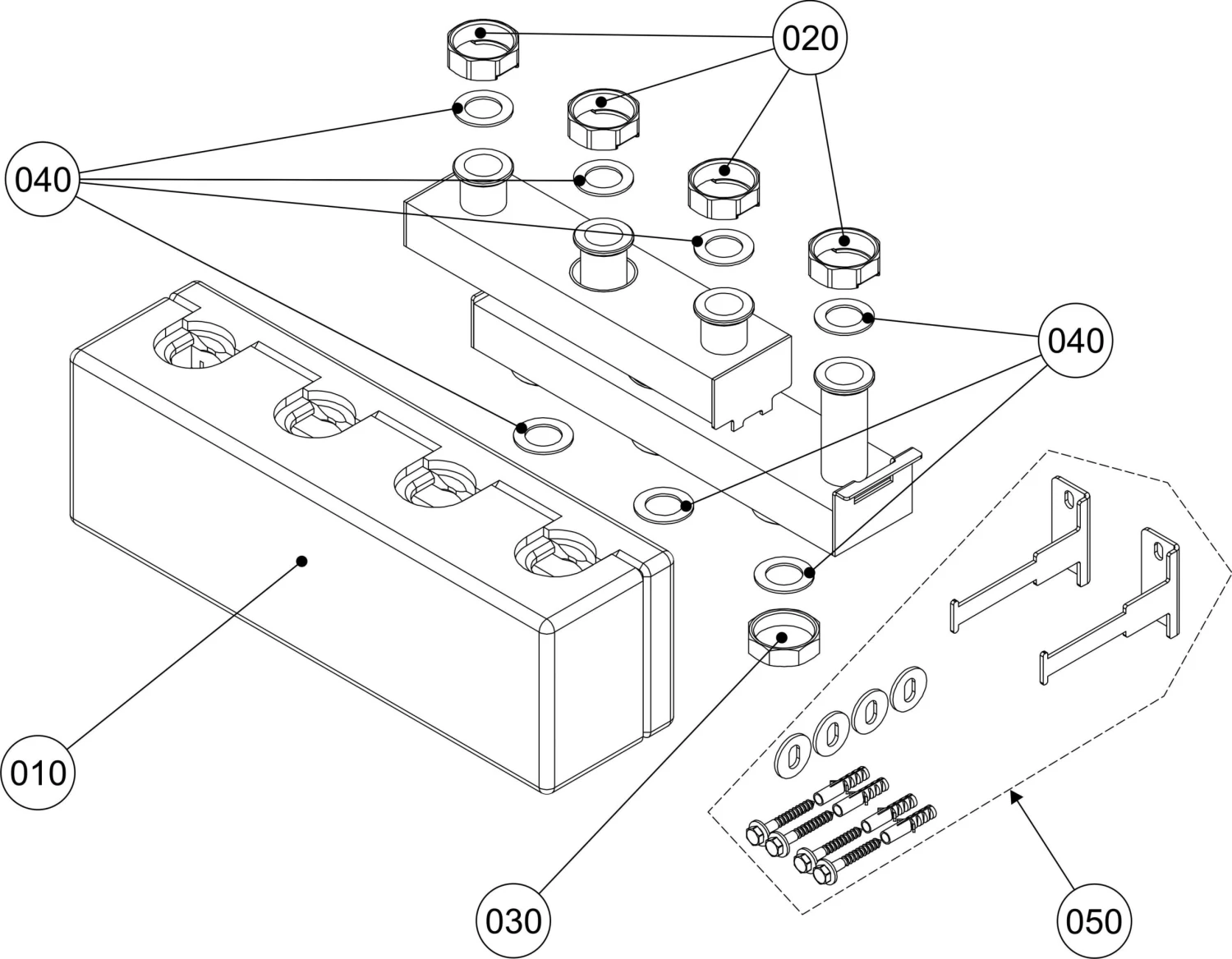 - in the case of wall mounting, it is fixed using the screw connection on the piping groups