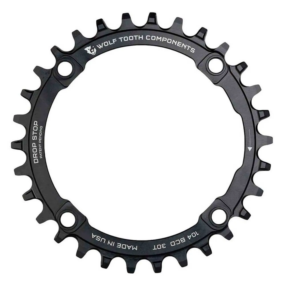 104 BCD is the most common bolt pattern on double and triple cranksets and happens to be the first product ever made by Wolf Tooth Components. The Drop-Stop® tooth design is the best performing and longest lasting wide/narrow chainrings on the market.
